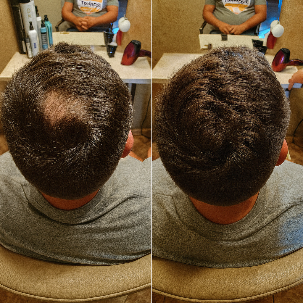 Zakolek™ to mikrowłókna, które dzięki ładunkowi elektrostatycznemu przyczepiają się do włosów i skóry głowy. W kilka sekund tworzą efekt gęstszej fryzury i zakrywają zakola oraz przerzedzenia.